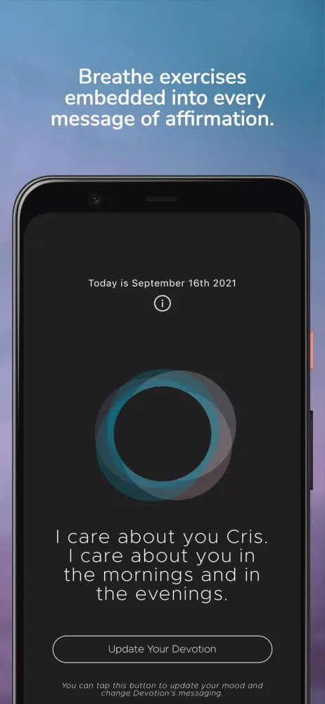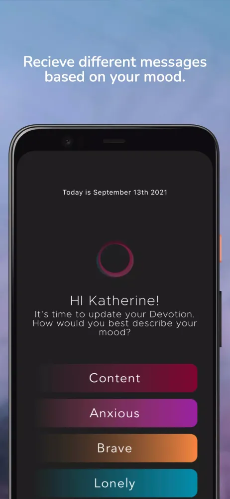 At the heart of Devotion lies its ability to deliver personalized messages based on both your gender identity and current emotional state. The app begins by asking for your name and preferred pronouns, creating a safe space where you can feel seen and valued. From there, you're invited to choose one of four moods—Content, Anxious, Brave, or Lonely—to align the affirmations with how you're feeling at any given moment. Each message is thoughtfully crafted by real people who understand the nuances of human emotions, ensuring that the affirmations resonate deeply with each user.