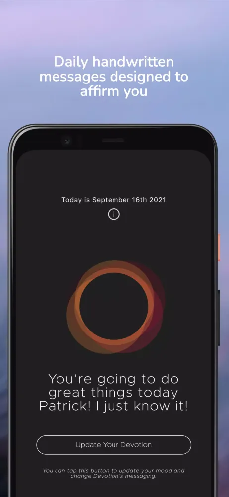 In today's fast-paced world, finding moments of peace and self-affirmation can feel like an elusive goal. Enter Devotion, a beautifully crafted application designed to uplift and support individuals on their personal journeys, particularly those in the transgender community. Initially developed as a tool tailored specifically for transgender individuals, Devotion has since evolved into a universal source of encouragement for anyone seeking positive reinforcement. Its mission remains unwavering: to bring joy, hope, and heartfelt affirmations to its users every day.