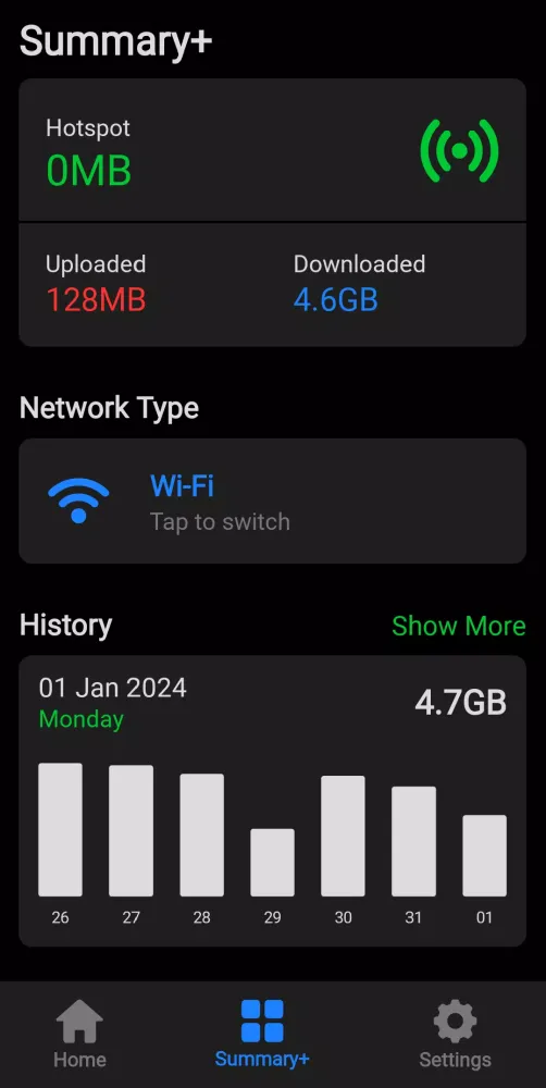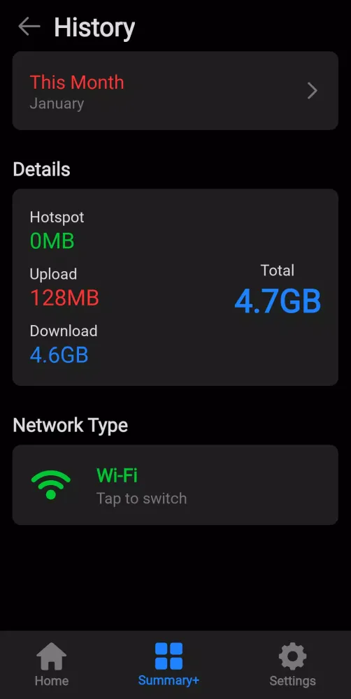 Another key feature is the ability to monitor data shared via hotspot. Whether you're tethering your phone to another device or sharing your connection with others, Internet Usage keeps tabs on both upload and download activity. This functionality is particularly useful for individuals who frequently rely on hotspot sharing or want to ensure they aren't inadvertently consuming excessive data.