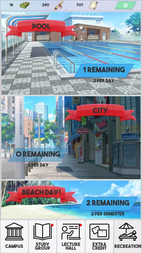 Manage your study group to maximize the potential of each student. Guide your study group through various activities such as attending classes, participating in recreational activities, and engaging in extracurricular events. Level up and equip your students to ensure they reach their full academic potential. Complete daily tasks to stay on track with your academic goals.