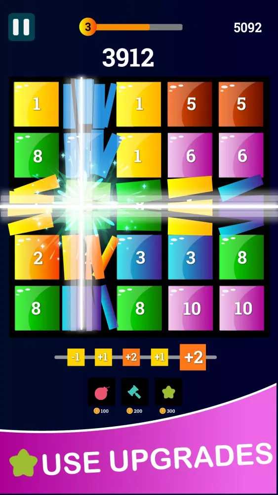 - Merge and Match: Strategically merge and match blocks to create higher numbers and clear the board, mastering the art of combining elements.