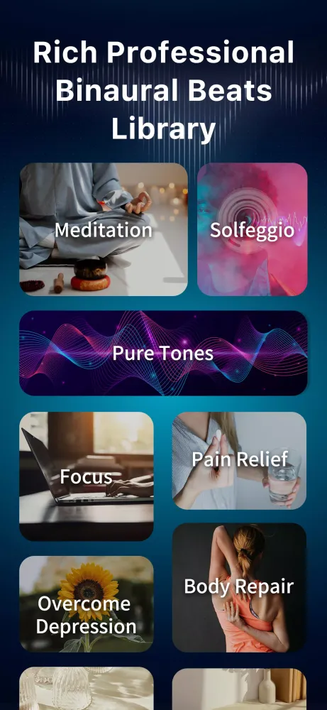 Our sound waves are meticulously crafted to address psychological issues, reduce stress, and enhance overall well-being. Each audio track is carefully composed and rendered to ensure the highest quality and effectiveness. By leveraging these scientifically-backed techniques, Binaural Beats - Brainwaves aims to transform your daily routine and promote a healthier, more balanced life.