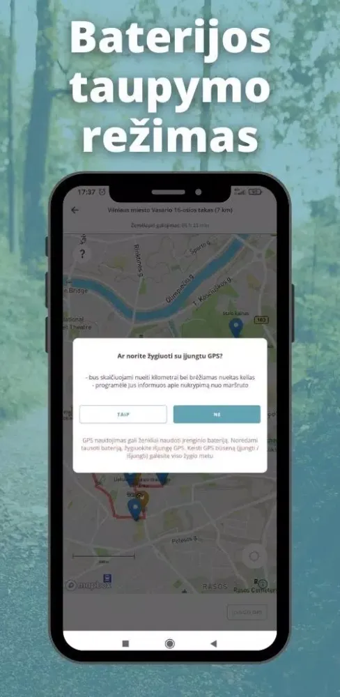 With TrenkTuras, choosing a hike has never been simpler. Simply browse through the extensive collection of pre-designed routes spanning across Lithuania, each offering unique scenery and challenges. From serene forest trails to breathtaking mountain paths, every route promises adventure and tranquility alike. So why wait? Dive into the app today and start planning your next great expedition!