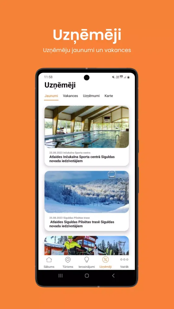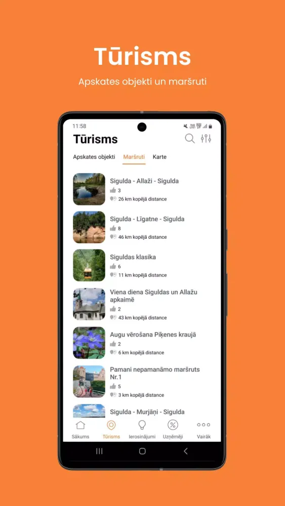 For those interested in business opportunities, the app offers a dedicated section highlighting special offers from local operators. Whether you're looking to support local businesses or discover unique deals, this feature ensures you're always in the loop. Moreover, Sigulda's tourism sector is well-represented in the app, with detailed listings of popular tourist attractions. You can even use the app to design your own personalized tourist routes, ensuring you experience the best of what the region has to offer.