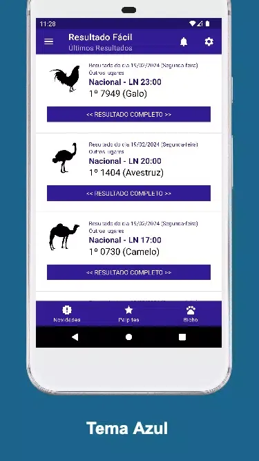 For those deeply invested in Jogo do Bicho, Resultado Fácil offers an extensive animal table that lists all the animals along with their associated groups, dozens, and numbers. This resourceful tool ensures that you always have access to accurate references while placing your bets. Furthermore, the app provides daily predictions based on thorough analyses of past draws, helping you identify emerging trends and optimize your strategies. These predictions are presented alongside relevant animals, making it easier to align your choices with the app's recommendations.
