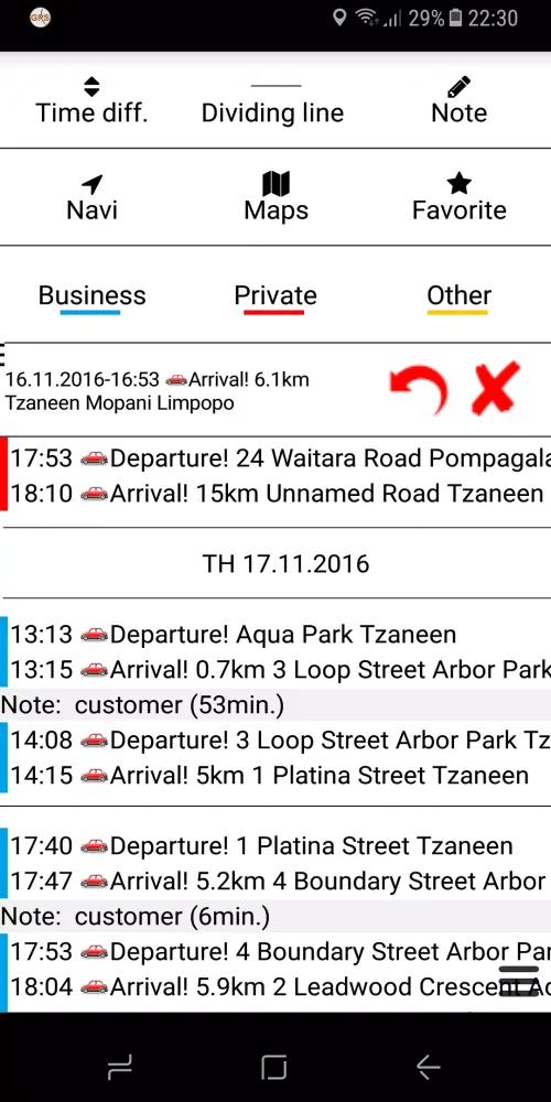For enhanced functionality, the app also tracks favorite locations, which can be automatically recognized and logged. This is particularly useful for regular routes, such as commutes to work or school. Users can also categorize their trips as either business, private, or other, providing flexibility for different types of travel. Furthermore, the app's low battery consumption design ensures efficient performance, as the GPS only activates periodically to save power while still maintaining accuracy.