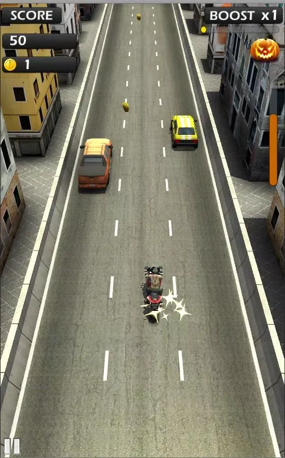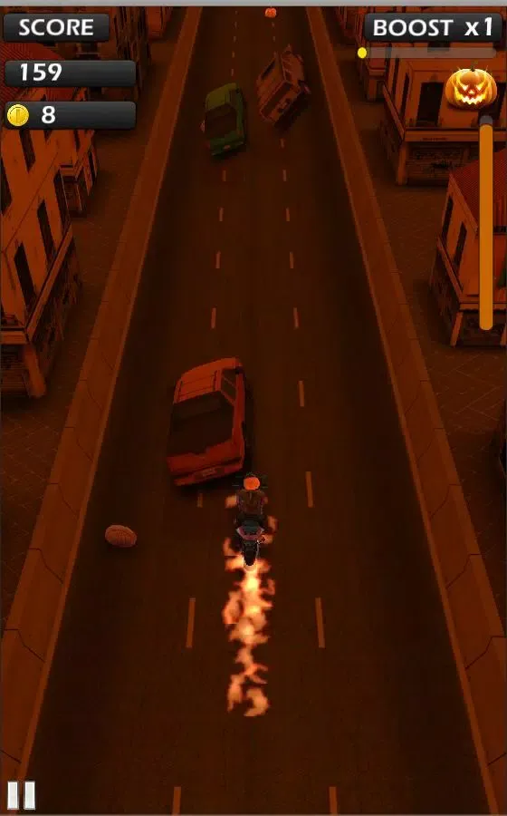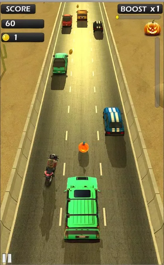 But wait—this isn’t just any ordinary race. This year’s Halloween season has brought something truly special to the table: rage pumpkins! These eerie yet exciting objects are scattered across the highway, waiting for you to collect them. Gather 10 of these magical pumpkins to activate the infamous rage mode, transforming you into a roaring, fiery pumpkin head rider. In this state, you become unstoppable—immune to collisions and capable of weaving through traffic effortlessly. Keep collecting pumpkins during rage mode to extend your transformation time, ensuring maximum destruction without limits. However, don’t get too comfortable; once rage mode ends, you’ll return to normal mode, leaving you vulnerable to obstacles. Be cautious—you might find yourself flying off your bike and landing dramatically among the vehicles below, thanks to the game’s realistic ragdoll physics.