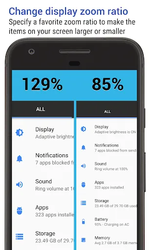 This app allows you to scale system font size from 25% (smaller) to 500% (bigger).