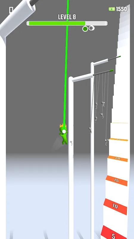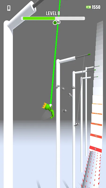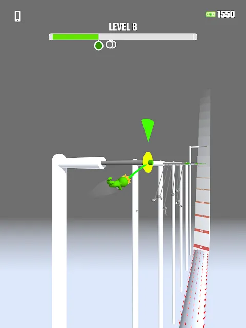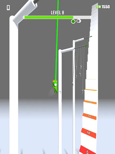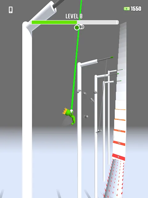 - Swing from hook to hook to pass all the levels