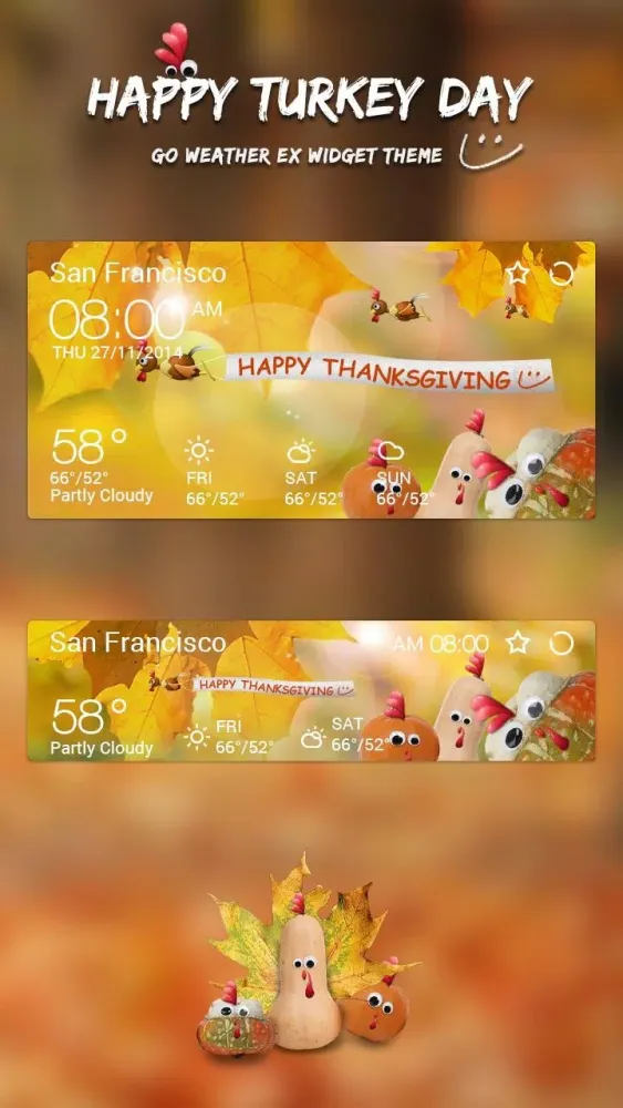 In summary, Happy Turkey Day GO Weather EX is more than just a weather app—it’s a lifestyle companion. Its unique themes, accurate forecasts, and customizable widget options make it an essential tool for anyone seeking to stay ahead of the weather. By following the simple setup instructions, you can transform your device into a weather-savvy powerhouse. Download the app today and experience the future of weather forecasting!