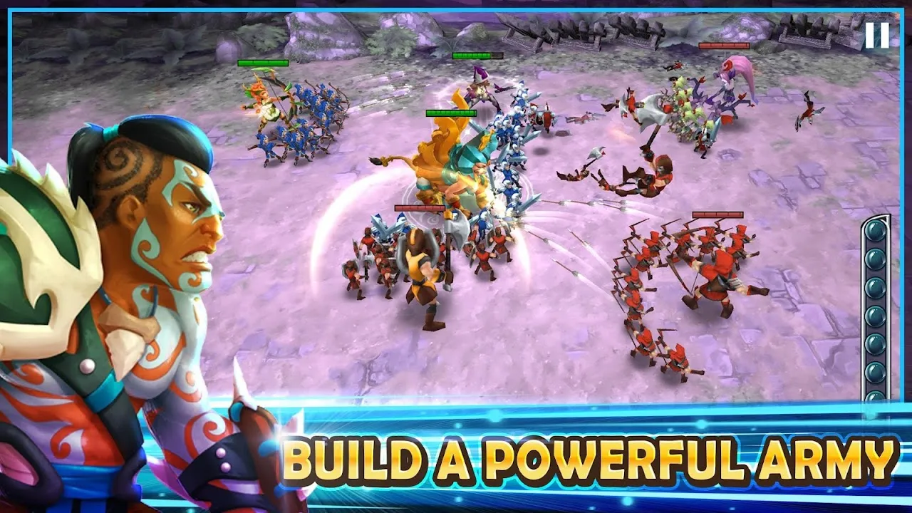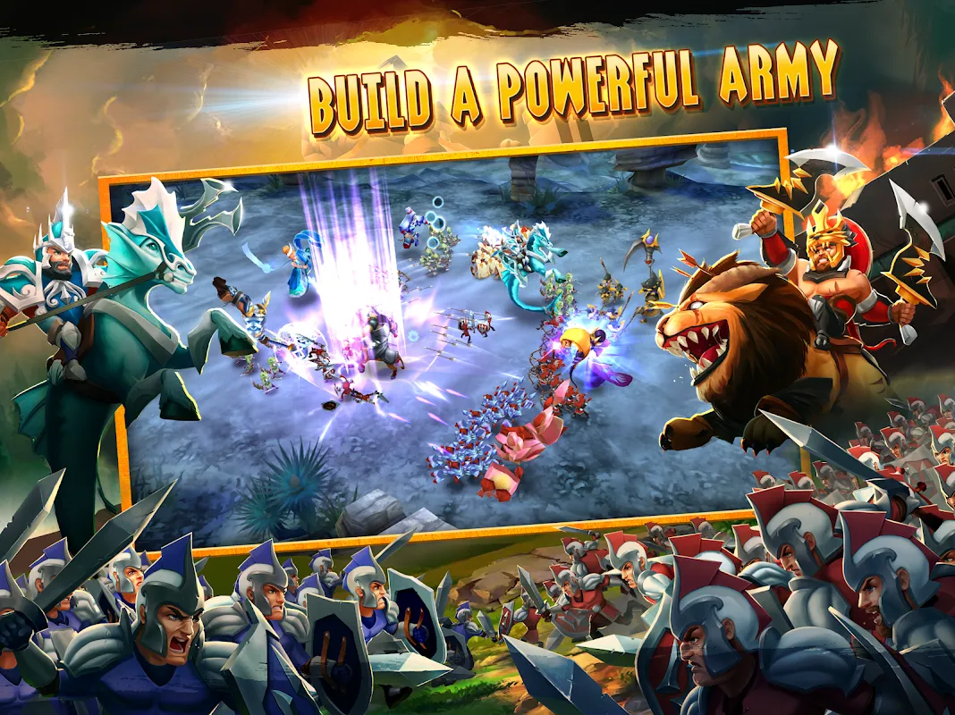 ● Form armies from a roster of powerful heroes and troops