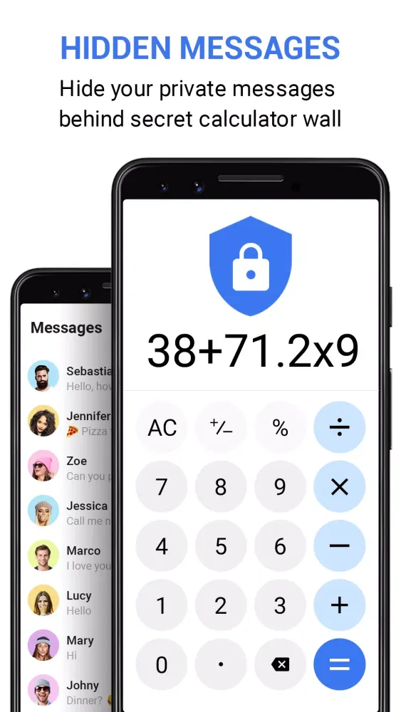 Experience the perfect fusion of convenience and confidentiality with Messages Calculator+. This app not only allows you to send and receive messages securely but also offers additional layers of protection such as encrypted chats and hidden messages. As a privacy-focused messaging tool, it provides users with a secure messenger that supports covert chat and discreet texting. The secret calculator app acts as a calculator vault, keeping your confidential chat records safe and out of sight.
