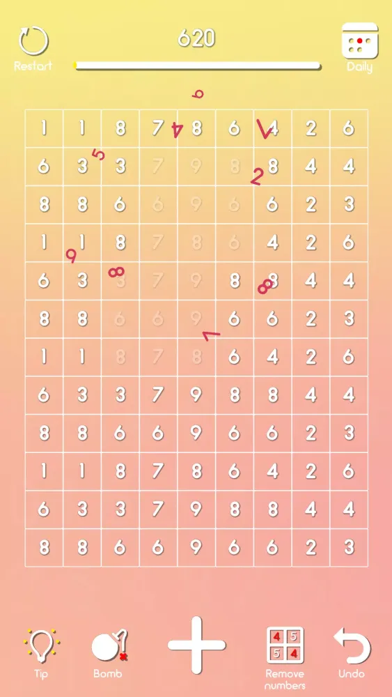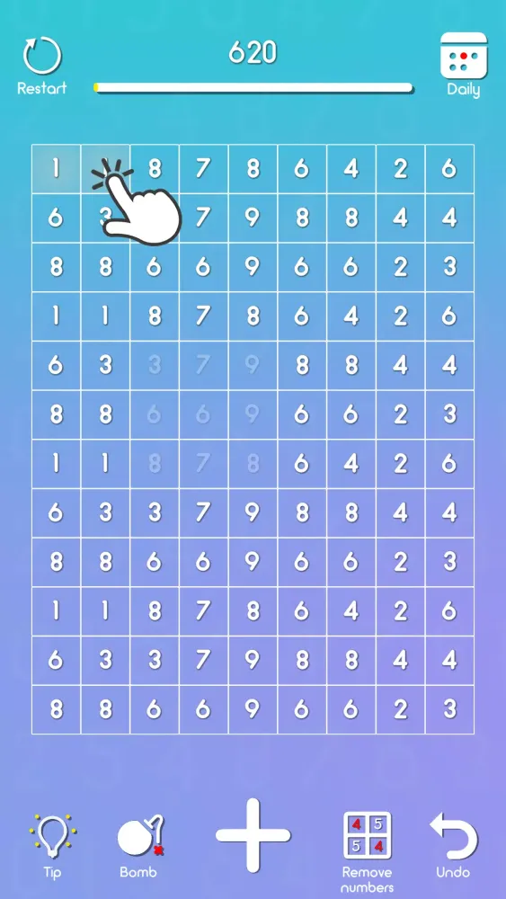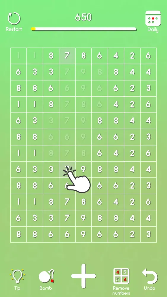 The core concept of the game is straightforward yet addictive. You need to eliminate all the numbers on the playing field by matching either identical digits (like two 4s) or pairs that add up to ten (such as 7 and 3). Each level presents a new layout of numbers, requiring quick decision-making and careful planning. If you encounter a situation where no valid matches can be made, don't worry—just move the remaining numbers into the next available cells, and continue until every single number is gone. It's like solving a sliding puzzle combined with mathematical reasoning!