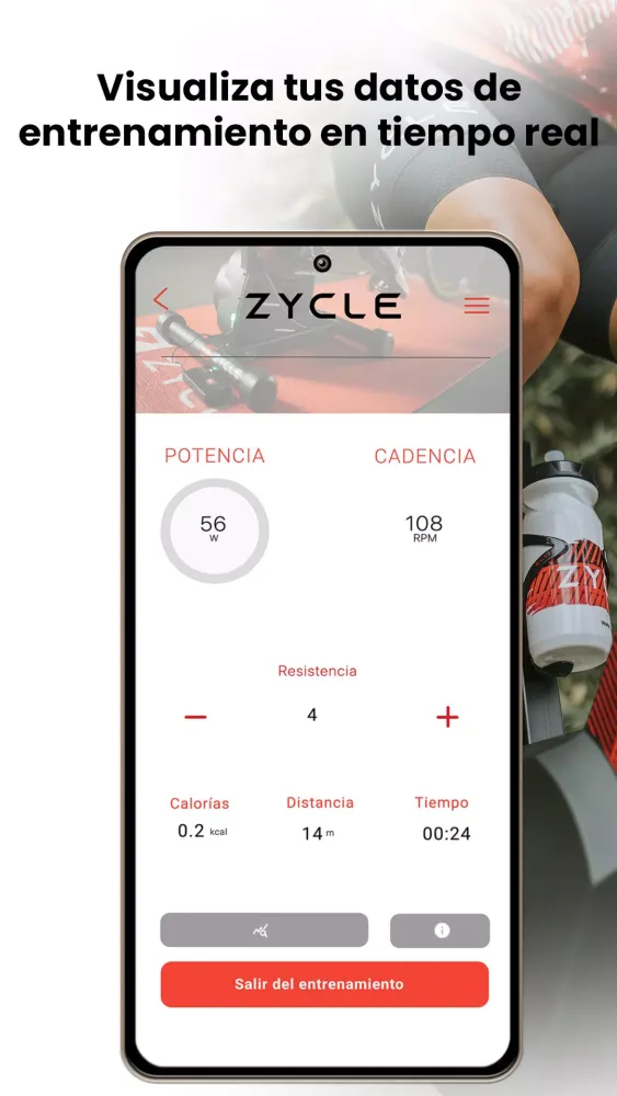 Install the ZYCLE app on your tablet or smartphone and gain instant access to live metrics from your training tab. Whether you're using a smart bike for professional cycling or general fitness, the app provides real-time data on power, cadence, calories burned, distance traveled, and session duration. This invaluable information helps you enhance your cycling workouts and fitness sessions, ensuring you get the most out of every ride.