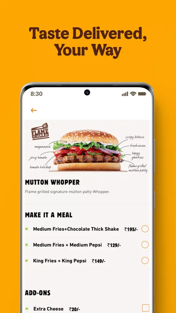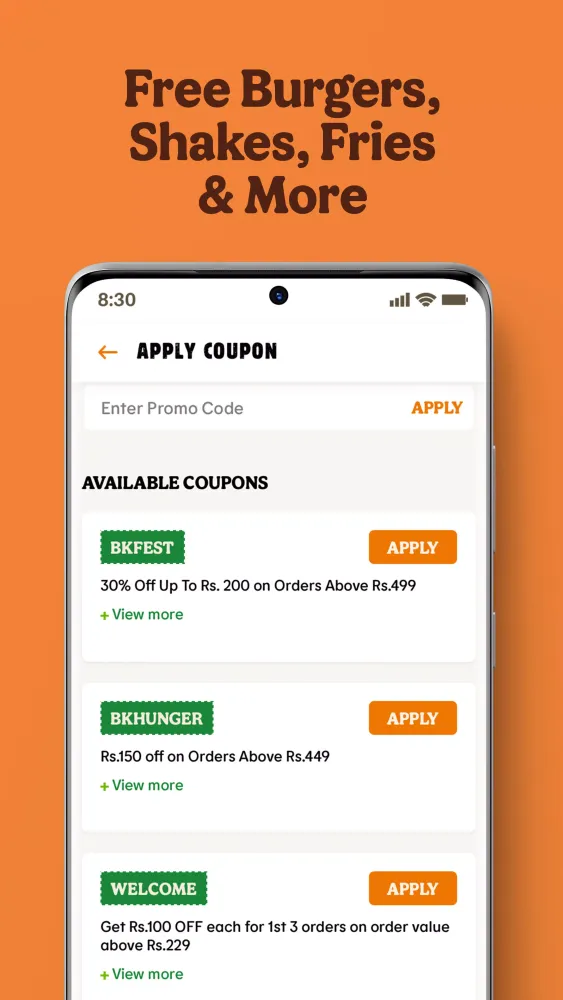 Welcome to the Burger King India app, where you can have it your way with the best offers and zero contact orders. This official application lets you place orders safely and conveniently for dine-in, takeaway, or food delivery.