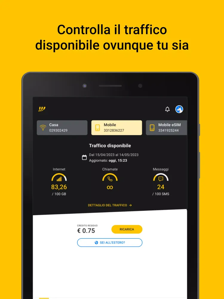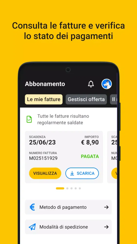 Recharge your Fastweb SIM cards directly from the app. No more trips to the store—everything happens quickly and securely online.
