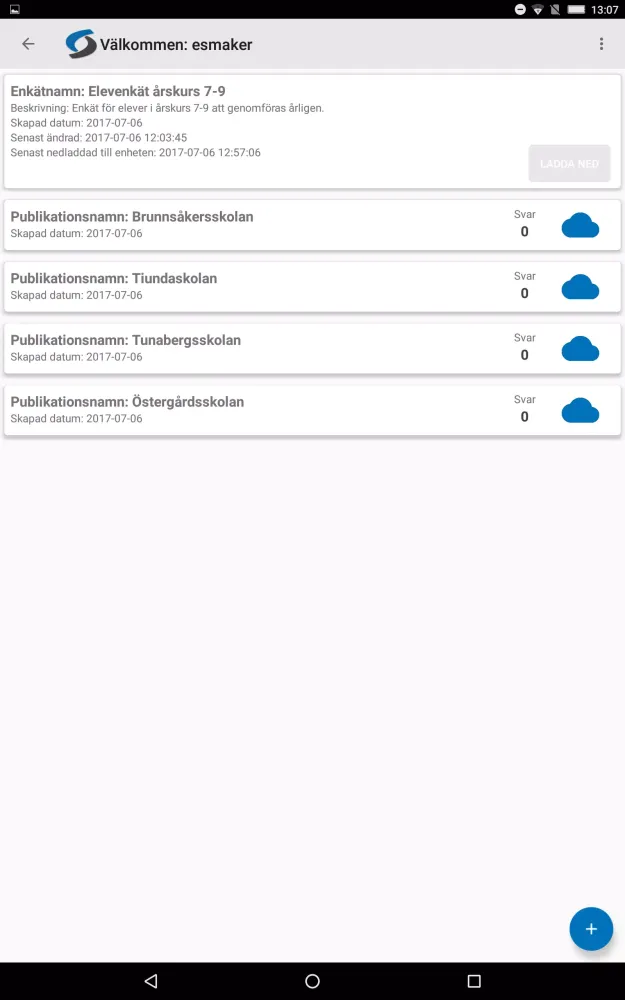 Another significant advantage of using esmaker pertains to uploading collected data back onto the esMaker (web) platform. At any point, administrators can choose to transmit gathered responses, which subsequently get stored under the pre-publication section. Upon successful uploads, local copies residing on individual devices are purged accordingly. Nevertheless, should technical difficulties arise preventing immediate synchronization, residual data stays intact on the device until further notice. Notably, the number displayed throughout the app representing total responses corresponds exclusively to entries currently present on the physical hardware.