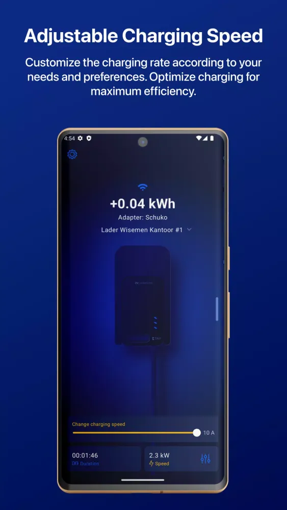 Effortlessly manage your charging process with EV Chargeking. With just a tap on your smartphone, you can start and stop charging whenever you want. Customize the charging speed to fit your specific requirements and preferences, ensuring optimal efficiency every time.