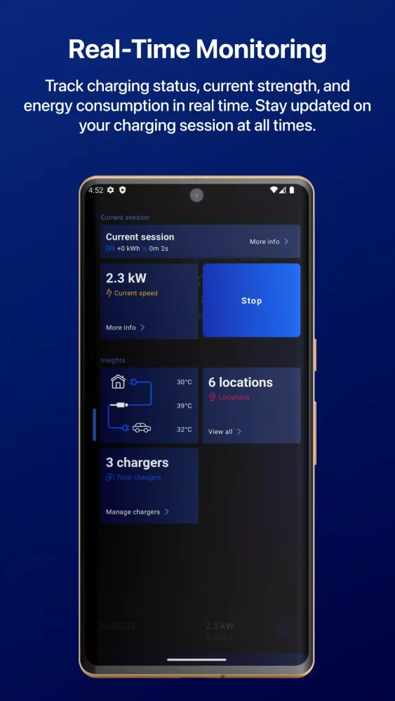 Stay informed with real-time monitoring. Keep track of your charging status, current strength, and energy consumption at all times. Receive timely notifications about completed charging sessions, power interruptions, and other important events.