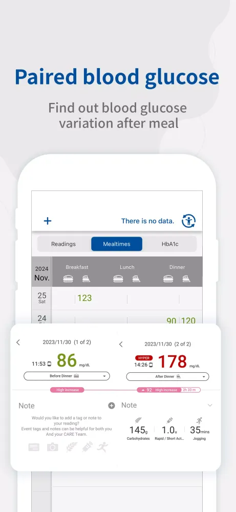 At its core, the app provides complete blood sugar management tools that make tracking your health seamless. Users can record insulin doses, upload photos of food intake, and jot down carbohydrate notes—all within a single platform. Additionally, the app includes intuitive status indicators such as "dawn," "before/after meals," and "bedtime," offering clarity on specific times of the day when monitoring is most critical. A standout feature is the ability to compare blood glucose levels before and after meals, providing valuable insights into dietary impacts on your health. Furthermore, users can sync their HbA1c records directly from hospitals, ensuring all data is centralized and accessible.