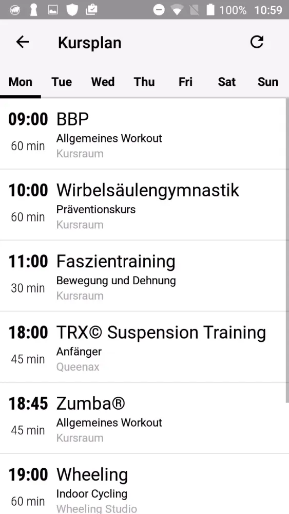 Stay ahead with direct and current access to the course schedule of your X-Force Sports Club from anywhere. Each course detail is just a tap away, including timings, descriptions, and room features. This ensures you never miss a beat in your fitness journey.