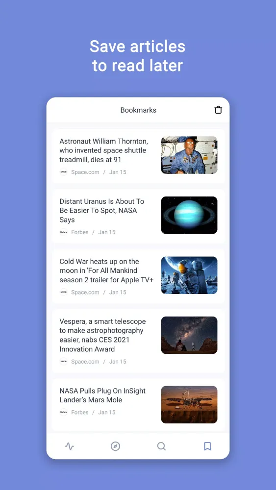One of the standout features of Science News is its endless scroll functionality. This allows users to seamlessly browse through article after article without interruptions. New science articles are added daily, ensuring that you always have fresh content to explore. For those who want to save particular pieces for later reading, the app includes a bookmarking feature. Additionally, a robust search function enables quick access to specific topics or keywords, making it easy to find exactly what you're looking for.