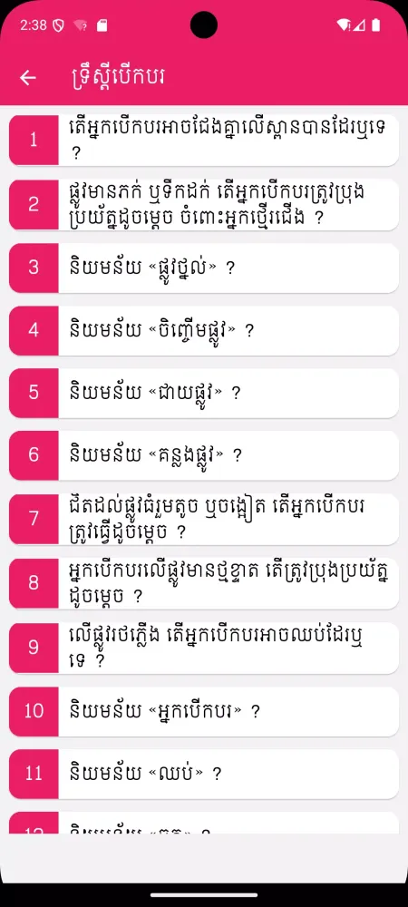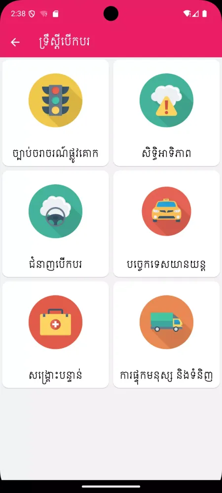Khmer Traffic is a user-friendly application designed to empower drivers with essential knowledge about traffic rules, signs, and driving theory in the Khmer language. Whether you're a new driver or someone looking to refresh their understanding of road safety, this app serves as an indispensable resource. It offers a clean, intuitive interface that ensures ease of navigation, making it accessible to users of all ages and backgrounds.