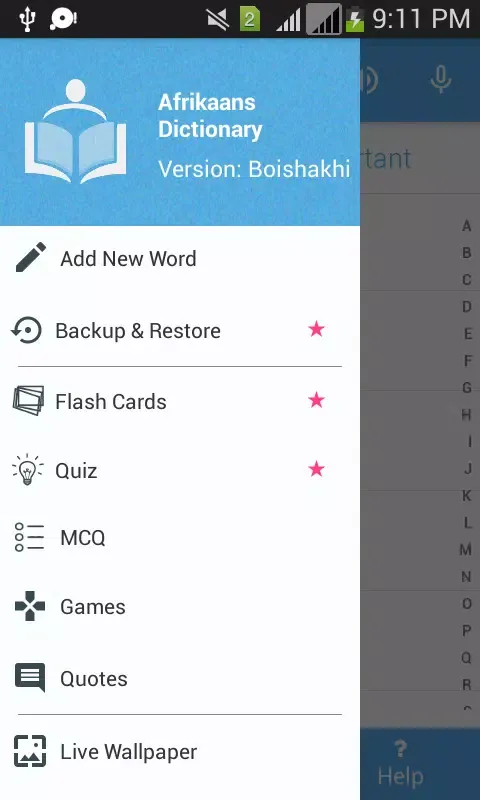 Extend your learning beyond the app with live wallpapers featuring words and their meanings on your home screen. Customize the wallpaper by selecting words from favorites, history, and the "Word of the Day" section. Choose the timeframe for displaying words and further customize the appearance.