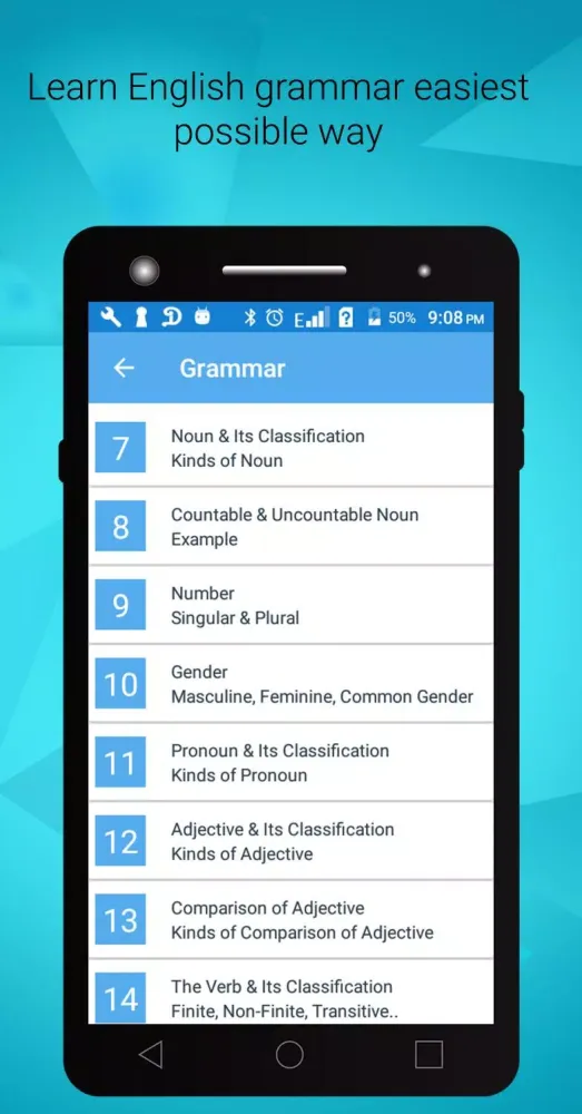 Master English grammar with ease. The app offers a straightforward and accessible approach to learning, providing clear explanations and examples.