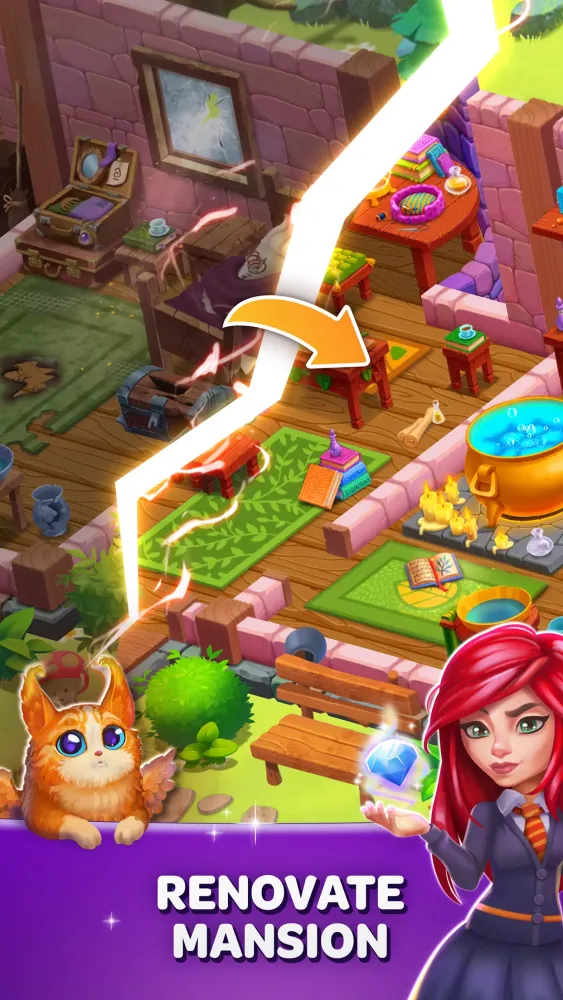 As you progress through the game, you'll have the opportunity to decorate Selena's mysterious castle. Complete magic orders and match 3 puzzle levels to earn coins and gems, which you can use to renovate the castle and furnish it with elegant decor. The game also introduces characters like Vlad, whose tricky levels will test your strategic thinking and logical skills.