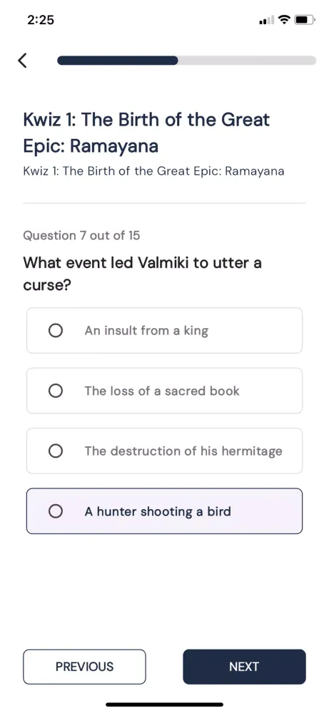 At the core of Kwizzles lies a meticulously curated collection of quizzes sourced from revered Hindu scriptures such as the Bhagavad Gita, Ramayana, Mahabharata, Puranas, and Upanishads. These quizzes are thoughtfully designed to cover a wide array of topics, including spiritual teachings, moral lessons, historical events, and mythical narratives.