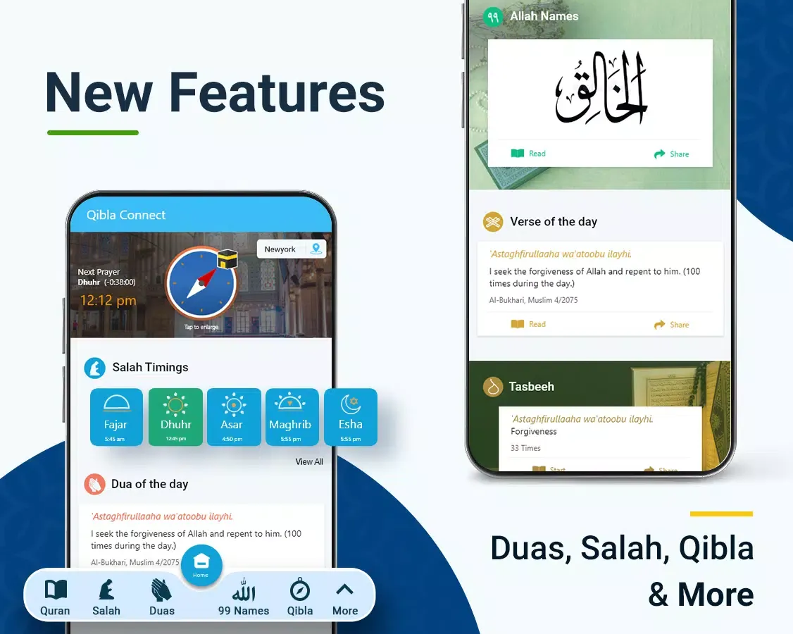 "Qibla Connect: Qibla Direction" is a powerful and essential application designed to assist Muslims in maintaining their spiritual connection with Allah and fulfilling their religious obligations with convenience. Whether you're traveling, at home, or in any part of the world, this app ensures that you have everything you need to perform your daily prayers with accuracy and devotion. It combines the functionalities of a Qibla Finder, Quran Reader, Prayer Times calculator, and additional features like Muslim Duas and knowledge about the 99 Names of Allah and Prophet Muhammad (PBUH).