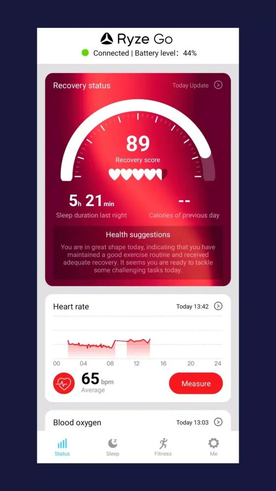 Another standout feature of Ryze Go is its recovery state analysis. This function evaluates both your activity levels and sleep patterns to determine whether you’re adequately recovering between sessions. If you're an athlete or someone who engages in regular intense training, this tool can be invaluable in preventing burnout and ensuring you have enough energy to tackle challenges ahead. By balancing activity and rest, Ryze Go helps users maintain peak performance and avoid fatigue-related setbacks.