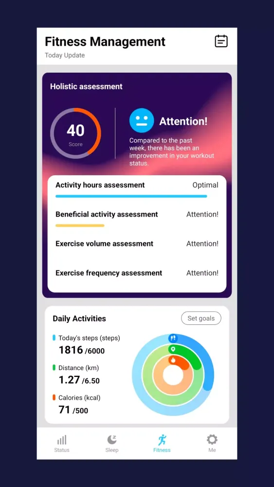 In addition to sleep monitoring, Ryze Go also tracks your daily activities. By integrating seamlessly with your smart ring, it records your steps, distance traveled, calories burned, and other vital metrics. These data points are presented visually through interactive graphs and charts, allowing you to easily understand trends in your activity levels over time. You can also explore detailed indices related to your workouts, helping you optimize your exercise routines and ensure balanced physical activity.