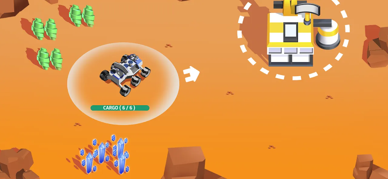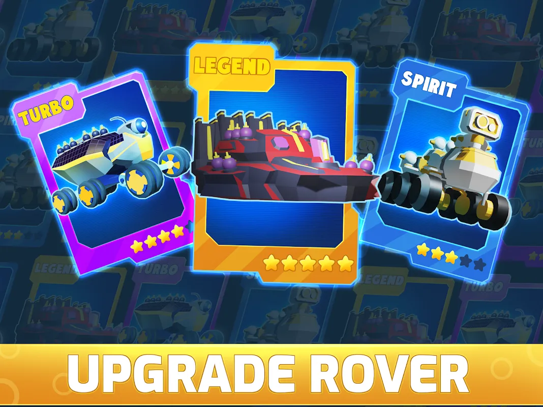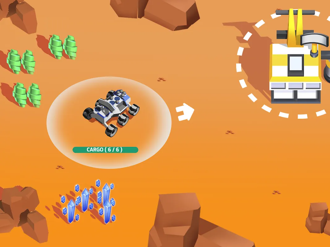 UPGRADE your rover to earn more money. Expand your cargo to mine more minerals, upgrade your speed to increase the efficiency of your space factory.