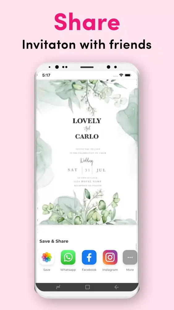 - Sharing Options: Directly save your card to your photo gallery or share it over social media platforms like WhatsApp, Facebook, Instagram, and more.