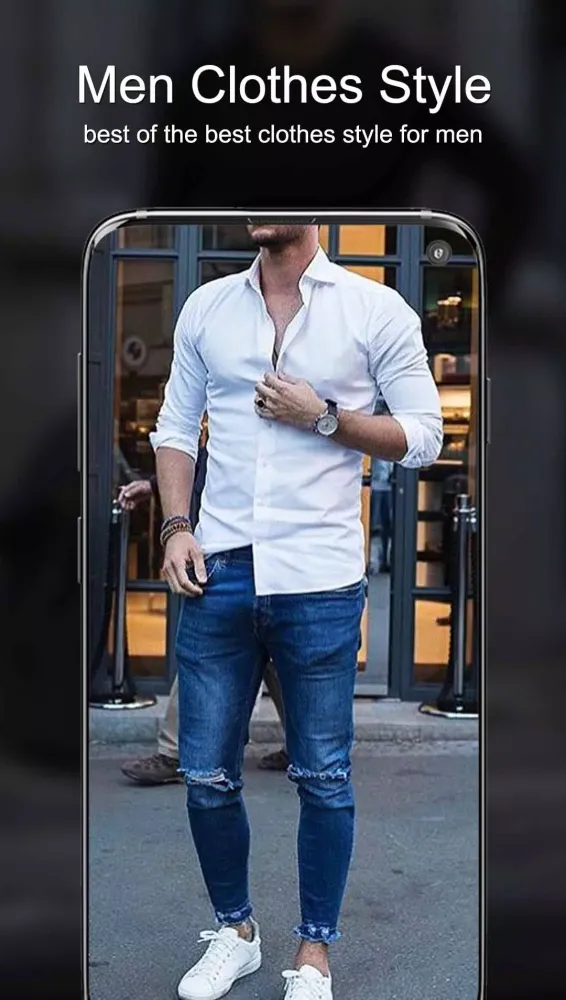 The "250+ Men Clothes Style" application offers an extensive collection of timeless men's fashion essentials that form the foundation of any stylish wardrobe. Whether you're looking for a classic pale blue button-down shirt, dark indigo jeans, or a pair of pristine white tennis shoes, this app provides the core pieces that will keep you looking sharp year-round.