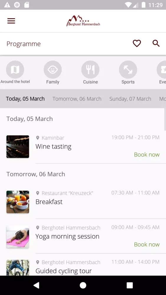 Simplify your vacation planning with the Berghotel Hammersbach app. Easily book your spot in exciting courses and activities, and reserve tables for dining experiences. Secure your preferred time slots for special offers and beneficial treatments like spa massages directly through the app.