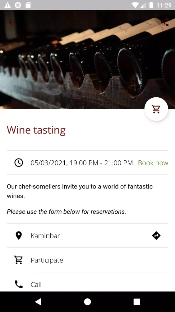 Explore our culinary offerings conveniently within the app. Our digital menus provide easy access to what's on offer at our restaurant. Key details such as location, directions, and operating hours of the restaurant and reception are readily available, making navigation effortless.