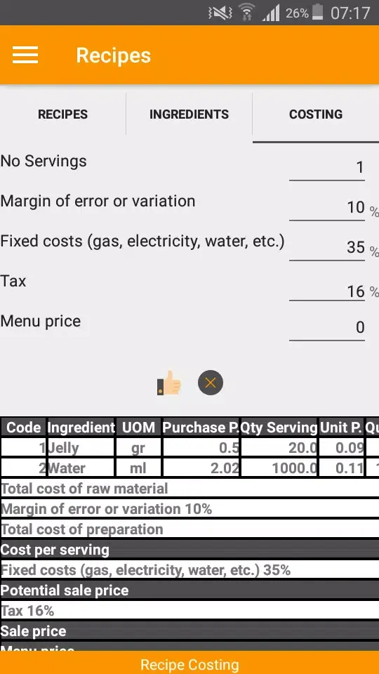 关于Recipe Costing