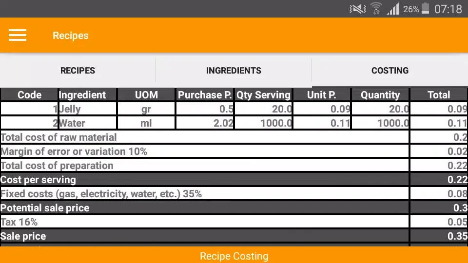 Recipe Costing is a powerful tool designed to help you quickly and efficiently calculate the cost of your dishes. Whether you're a professional chef managing large-scale catering events or a home cook looking to optimize your meal planning, this app provides an intuitive interface for tracking ingredient costs and determining the per-serving price of any dish. With its user-friendly design, Recipe Costing simplifies the process of budgeting for meals based on the number of servings.