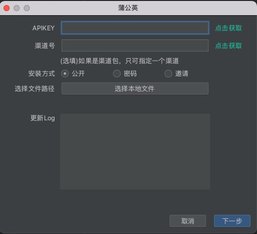 - If you're using Pgyer's channel feature, fill in the Channel number (each channel apk can only target one channel).
