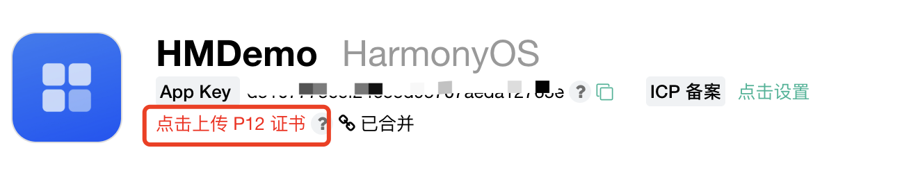 .p12used to sign the.hapis identical to the.p12you'll upload to Pgyer; - Only HarmonyOS