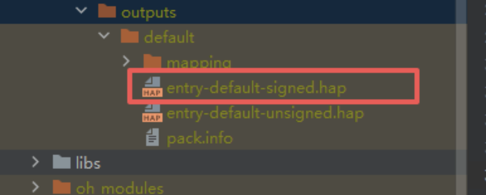 .haphas been signed with a signing tool such as Huawei's DevEco Studio. A correctly signed output is namedXXXX-signed.hap; see Huawei: Build and Package an App; - The