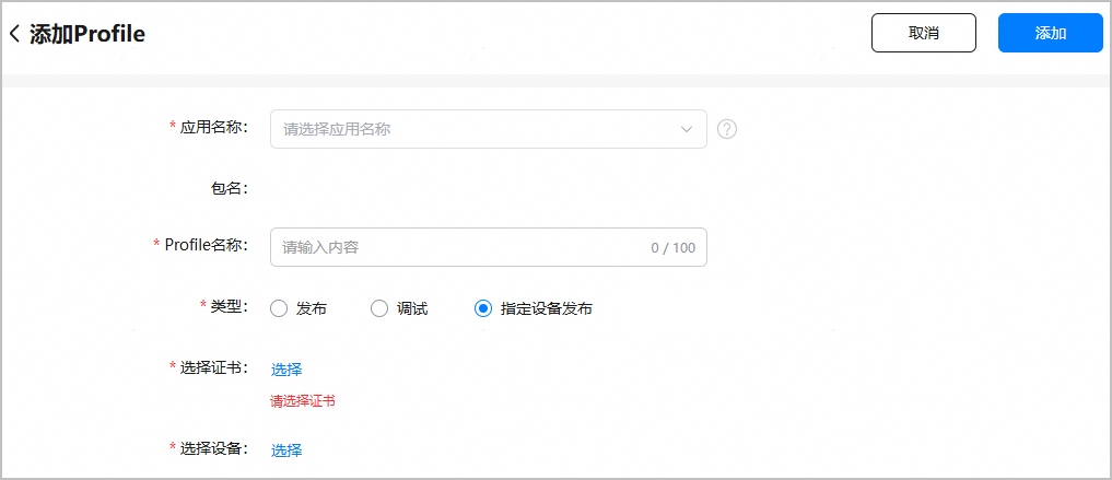 .hapmust be of type Specified Device Release. If not, the console reportsProfile type errorafter upload. See Apply for a Specified Device Release Profile: