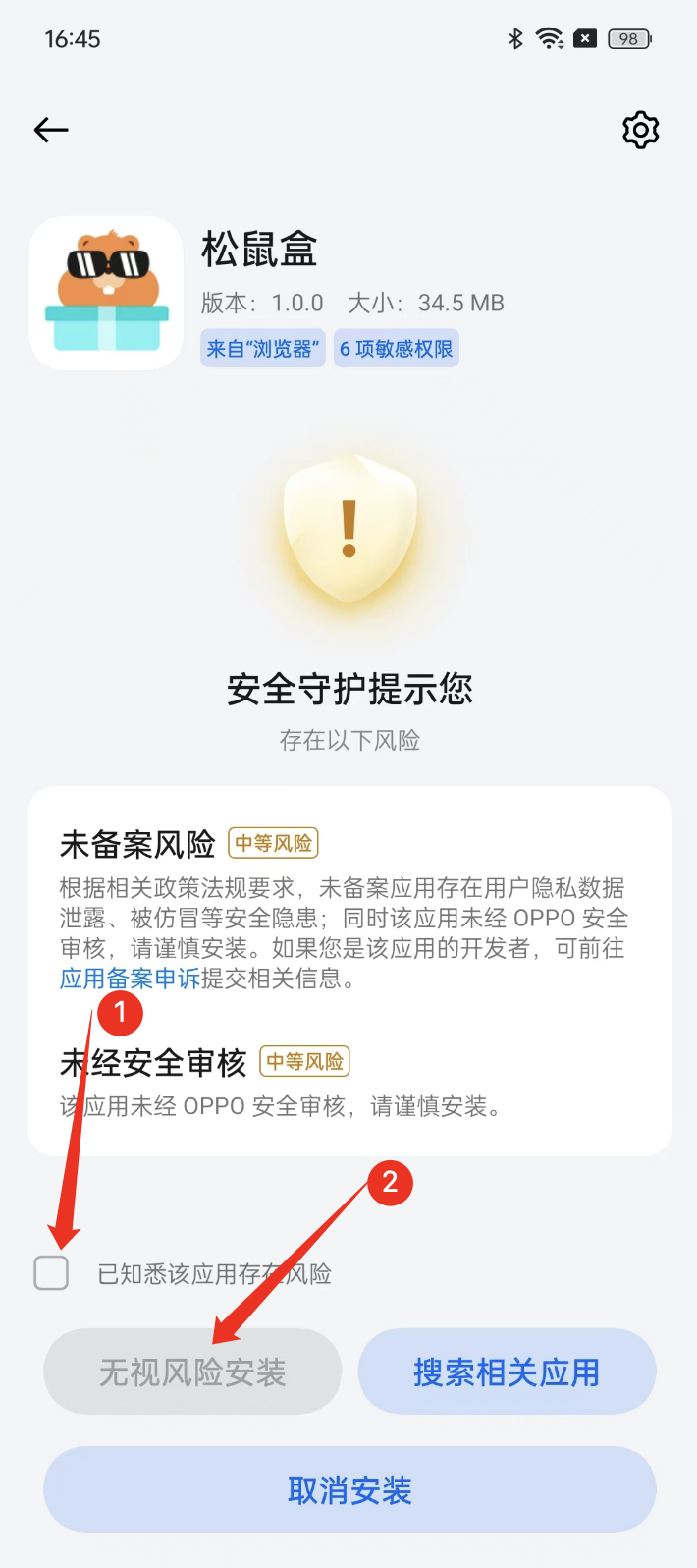 Common prompts when installing non-app-store APKs on OPPO devices — not security-reviewed, not-filed-with-regulator warnings — and how to handle them.