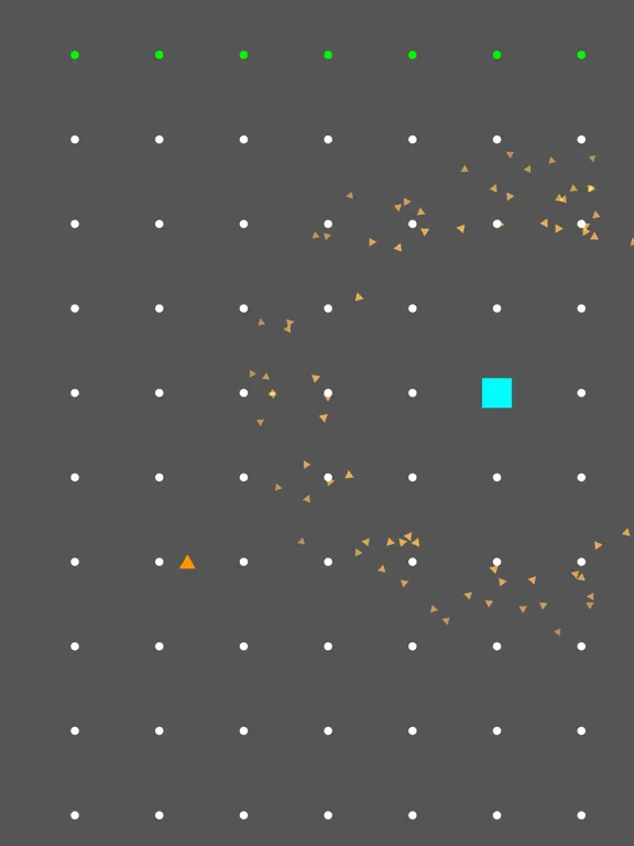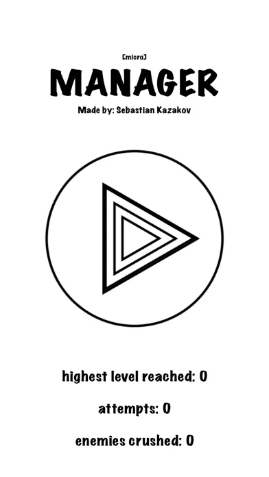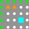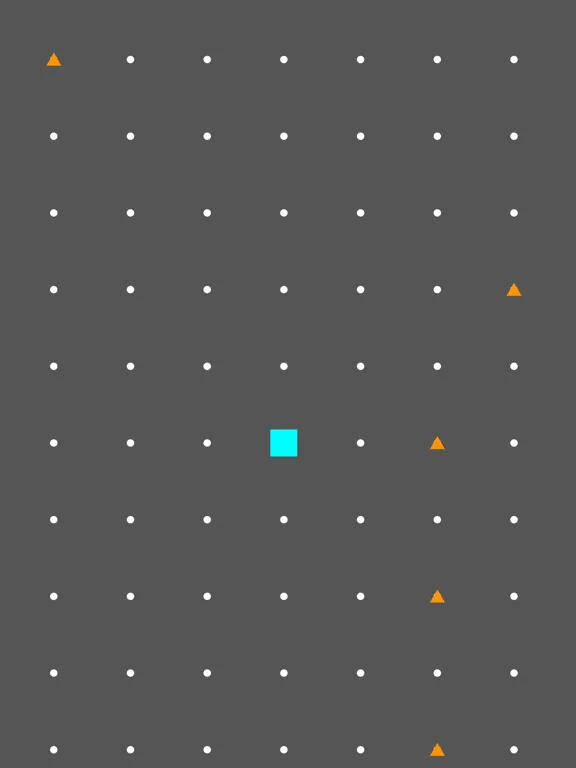 [micro]MANAGER is a turn - based game where you control a cyan square. This little square is going to be in the middle of a 17 * 17 dot field, and it is going to be surrounded by orange triangles. These orange triangles are very simple AI that will dash by one unit towards the closest end of the field to escape the player 67% of the time, or make a random move 33% of the time, every time a "turn" has passed. The cyan square, cannot allow this. You must control the cyan square to run over the triangles, set up barriers, and manage each escapee, preventing them from escaping the field. If you are successful, you will be sent to the next level, where one more runaway will be added. You will play until a triangle escapes from you, and when one does, you will be sent back to the title screen.