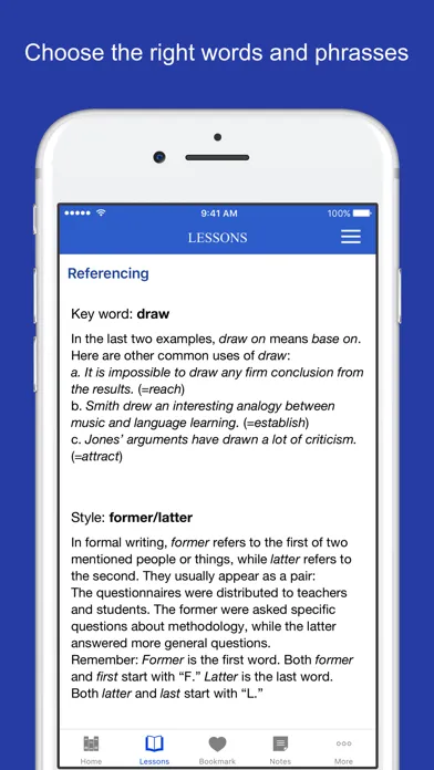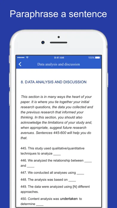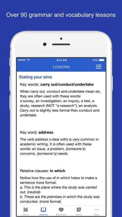 This app is great reference for both graduate and undergraduate students who already know the basics of academic writing but may still struggle to express their ideas using the right words.