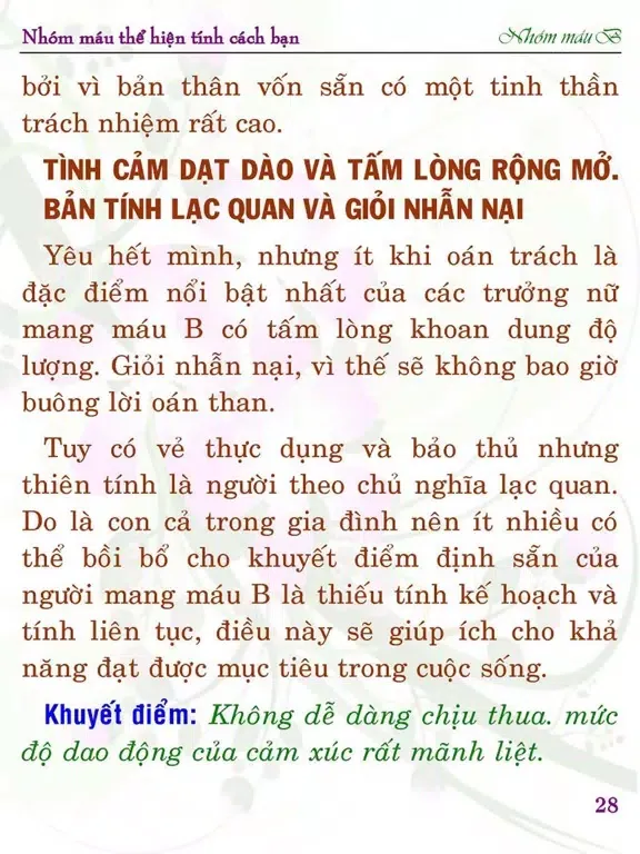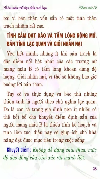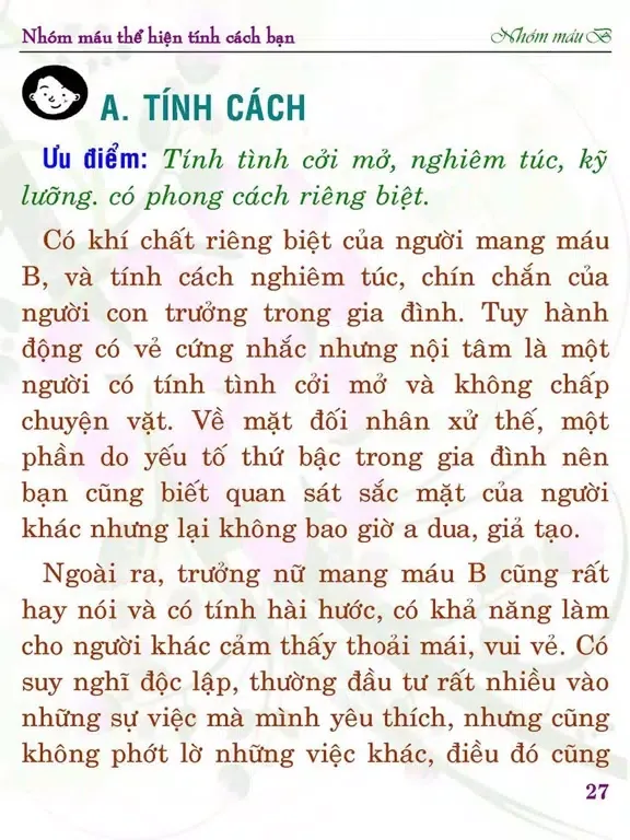 MÁU B THỂ HIỆN TÍNH CÁCH BẠN
