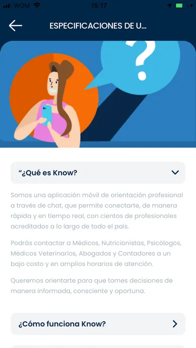Orientación profesional multidisciplinaria a bajo costo mediante mensaje instantáneo y en tiempo real. Contacto directo y respuesta de dudas específicas con profesionales chilenos certificados. Médicos, Nutricionistas, Psicólogos, Médicos Veterinarios, Abogados y Contadores.
